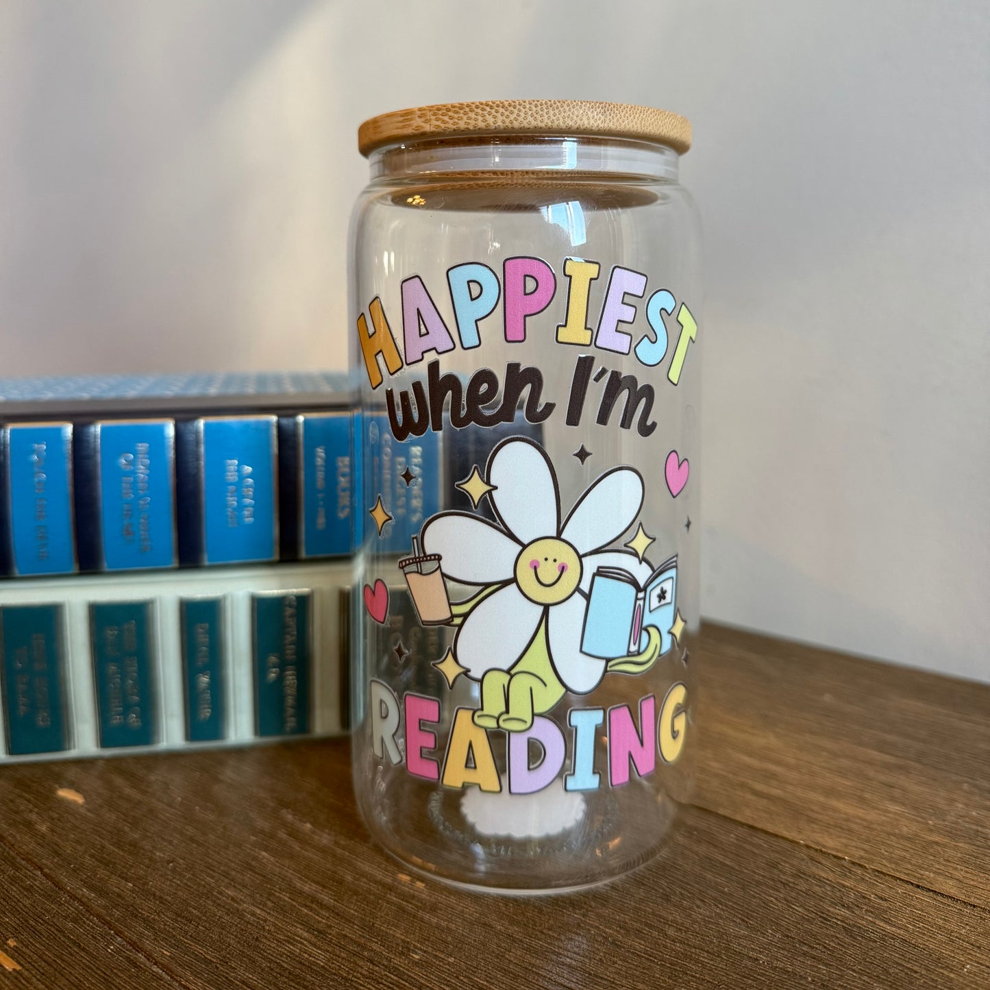 Happiest When Reading 16oz Can Glass